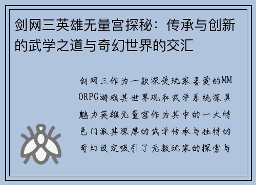 剑网三英雄无量宫探秘:传承与创新的武学之道与奇幻世界的交汇